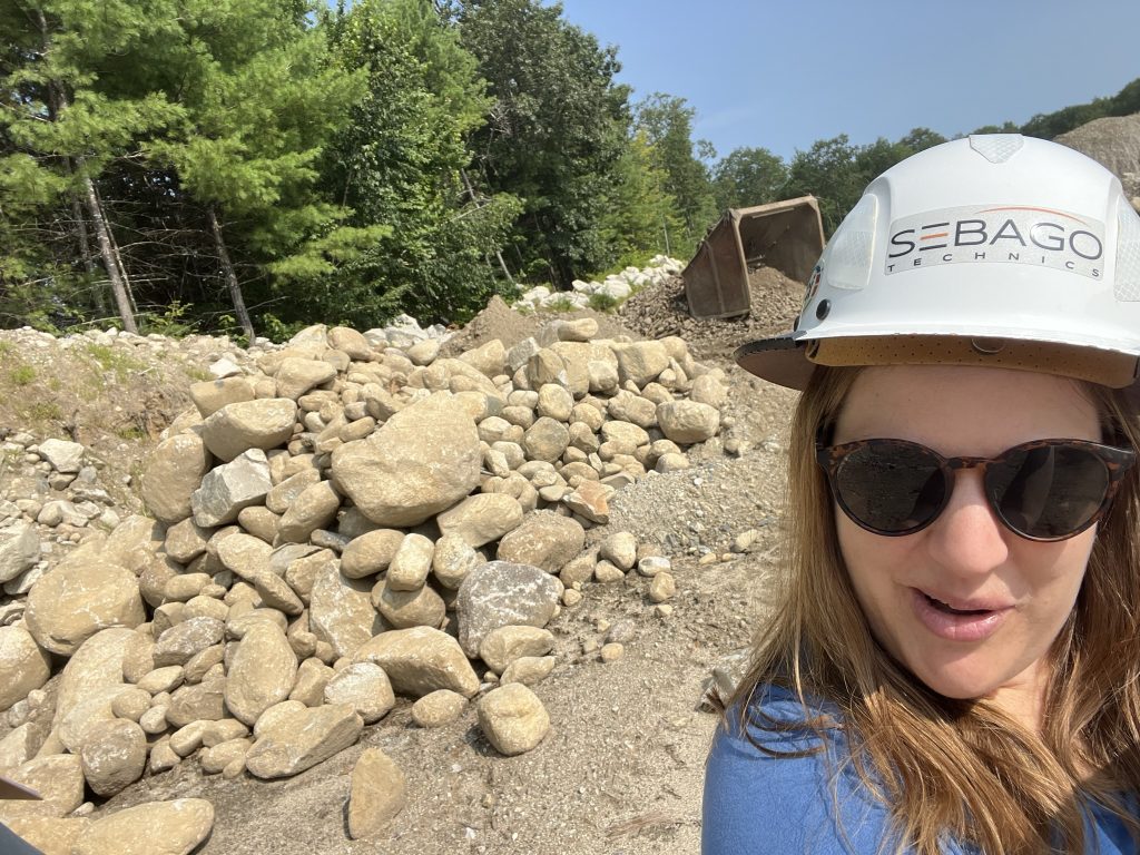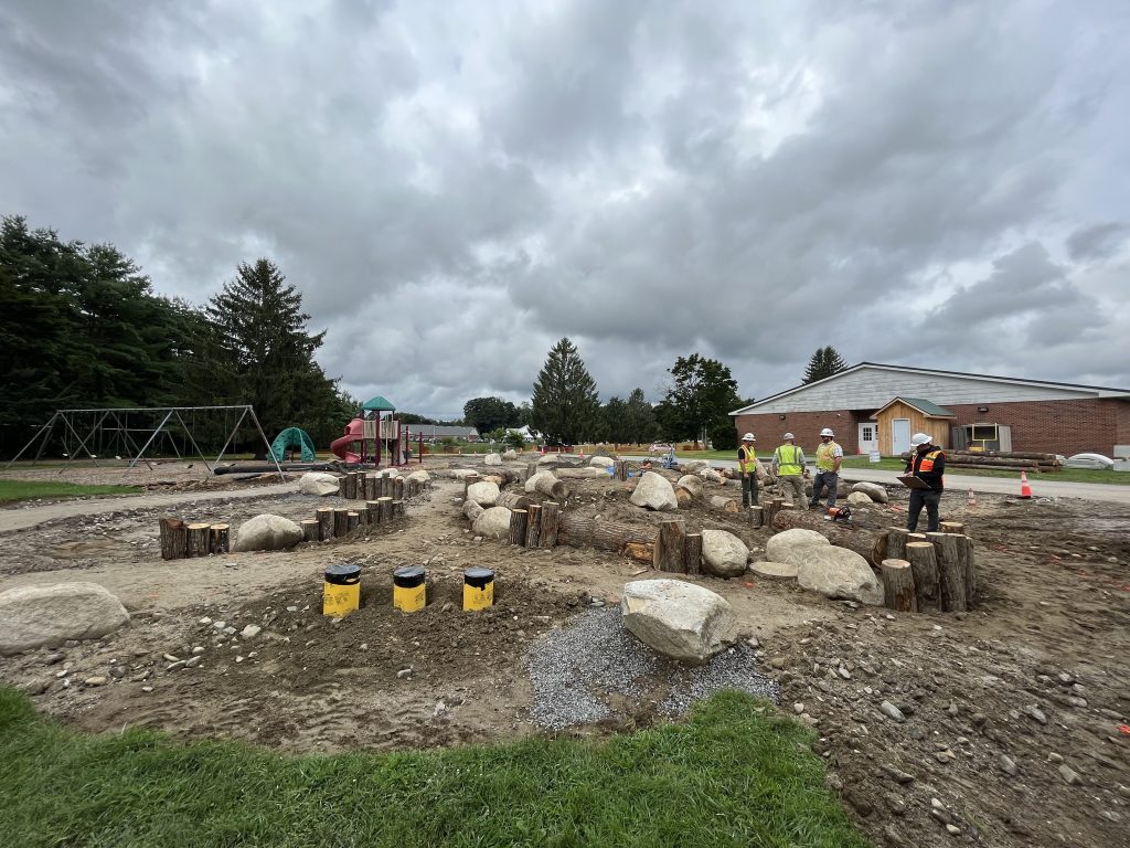 Shown below are photos of the playground under construction, Margo Barajas, RLA, Landscape Architect, selecting boulders at the Grondin Pit (no rough edges please!), and the completed playground in-use!